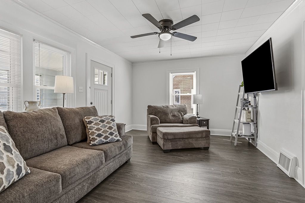 Located in the desirable Riverview Historic District, this beautifully updated home blends timeless character with extensive modern improvements and now offers expanded living space with a finished basement primary suite. Classic details like wide trim and glass door knobs complement major updates including newer roof, windows, exterior doors, electrical, plumbing, and a new water line from the street to the home. An enclosed front porch welcomes you inside to a bright living room flowing into the dining area with backyard views, while the renovated kitchen features stainless steel appliances, quartz countertops, updated cabinetry, lighting, and flooring. The main level offers two bedrooms connected by a fully remodeled Jack-and-Jill bath with tiled tub/shower surround and updated fixtures. Downstairs, the professionally finished basement creates a spacious private retreat complete with a bedroom area, full en suite bathroom, and walk-in closet, plus additional storage and laundry space. Outside, enjoy a fully fenced backyard with new vinyl privacy fencing and a refreshed detached garage with updated siding, service door, overhead door, and new electrical service. Conveniently located near parks, trails, and the river, this move-in-ready home offers the perfect combination of charm, functionality, and peace of mind.
