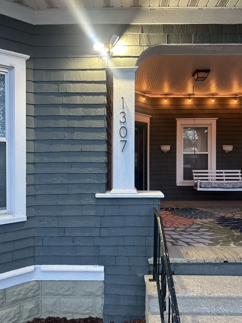 Character and charm await you in this darling move-in ready home! Covered front porch with swing leads you to a sweet entry. A bright, inviting living room boasts hardwood floors, diamond leaded window, a stained glass window, and a pillared wall adjoins to the dining room with a massive window bench seat, and the gorgeous hardwood floors continue. Kitchen has stainless steel appliances, oak cabinets, and great lighting. Bathroom is bright and white with amazing shower/tub. West bedroom boasts hardwood floors, and another stained glass window. a wall of closets/storage spans the second bedroom. Hardwood floors look amazing throughout. Five panel solid wood doors with ornate Victorian backplates and door knobs. A fully fenced yard offers privacy and solitude with landscaping and allows entry to the 1-car detached garage. Full unfinished 3 room basement - mechanical room, 1 previously used as a workout room, and huge room with washer dryer with so much potential/storage. Since 2023: new water heater, new SS appliances, new blinds throughout, new bedroom window, basement block window, updated some electrical, basement dewatering system, and sump pump. 2020:HVAC and renovated bathroom. 2018: Roof, soffits, fascia & gutters. Check out this little hidden beauty for $158,000!!