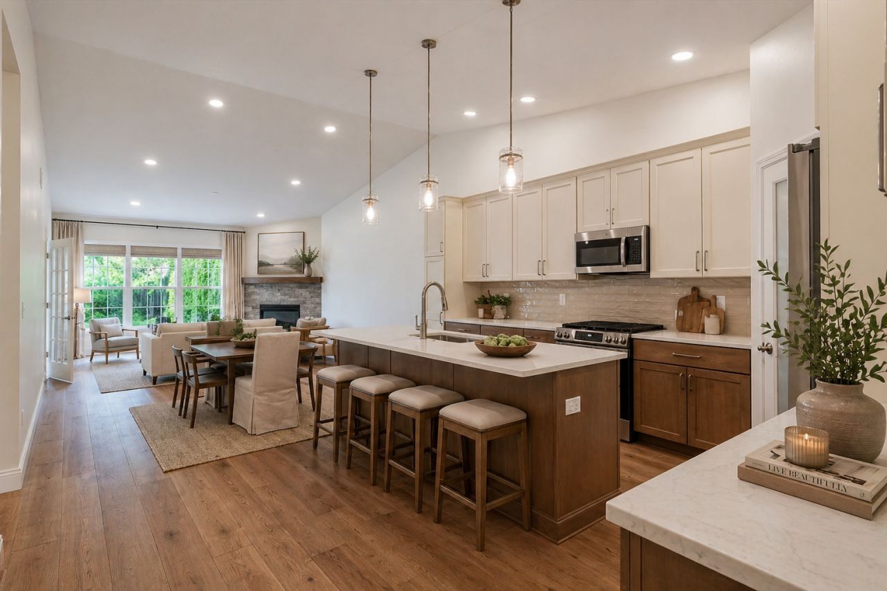 This is the one you've been waiting for. Completely rebuilt from the studs and better than new, this home offers peace of mind with major 2026 updates including roof, electrical, HVAC, and water heater. Step inside to a bright, open-concept main floor featuring engineered hardwood flooring, a cozy gas fireplace, and abundant natural light. The kitchen is designed to impress with two-toned cabinetry, brand new stainless steel appliances, and an expansive island with seating for four, perfect for everyday living and entertaining. The main level includes two bedrooms plus a versatile den. A sun-filled additional living space, surrounded by windows, overlooks the private backyard with mature landscaping and a concrete patio-creating the perfect setting to relax or host. The finished lower level adds even more flexibility with an additional bedroom, full bathroom, family room, and ample storage. Blinds will be installed prior to closing, making this home truly move-in ready.